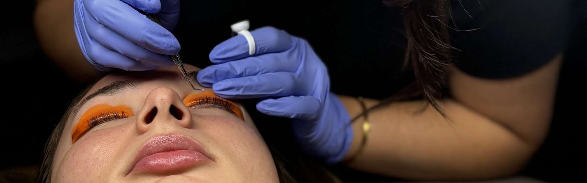 Lash tinting enhances the eyelashes to make them appear darker and fuller by applying a specially formulated dye to the lashes, eliminating the need for mascara for a more natural look.
