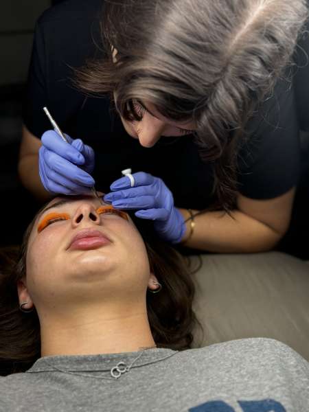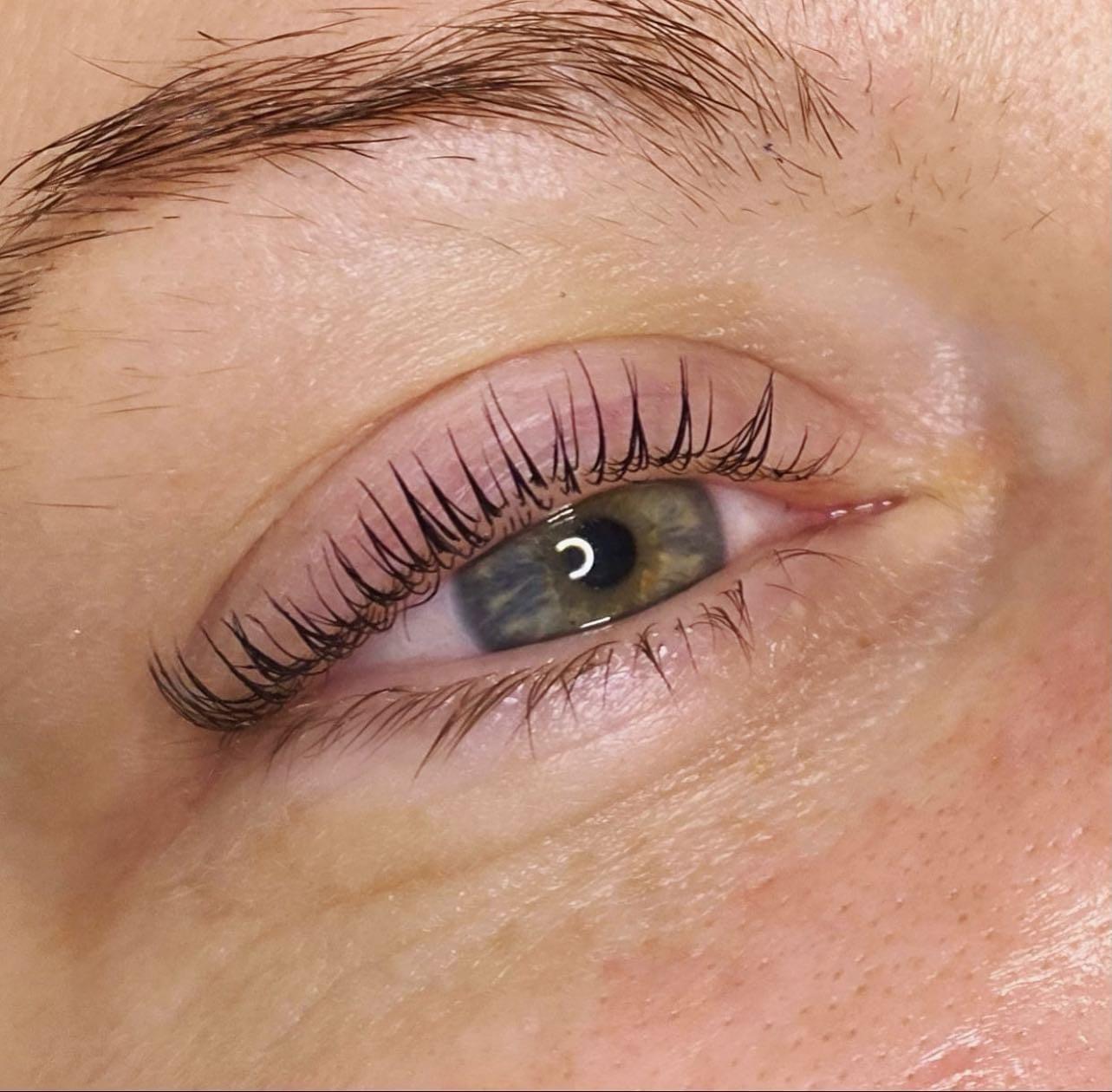 Brow lamination ($75) is a cosmetic treatment designed to create fuller, more defined eyebrows by reshaping and setting them in a desired position. This service includes a brow wax.